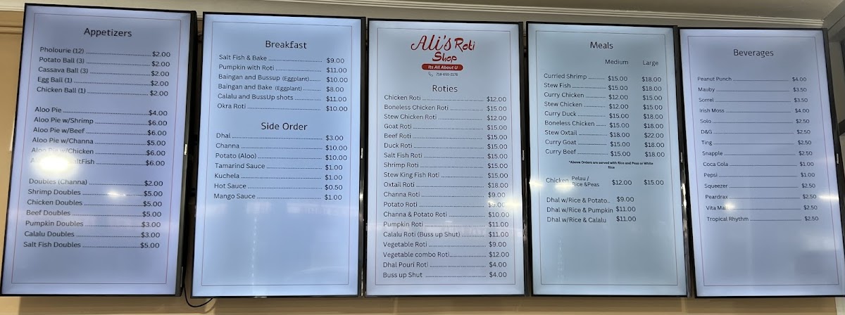 Ali's Roti Shop Menu